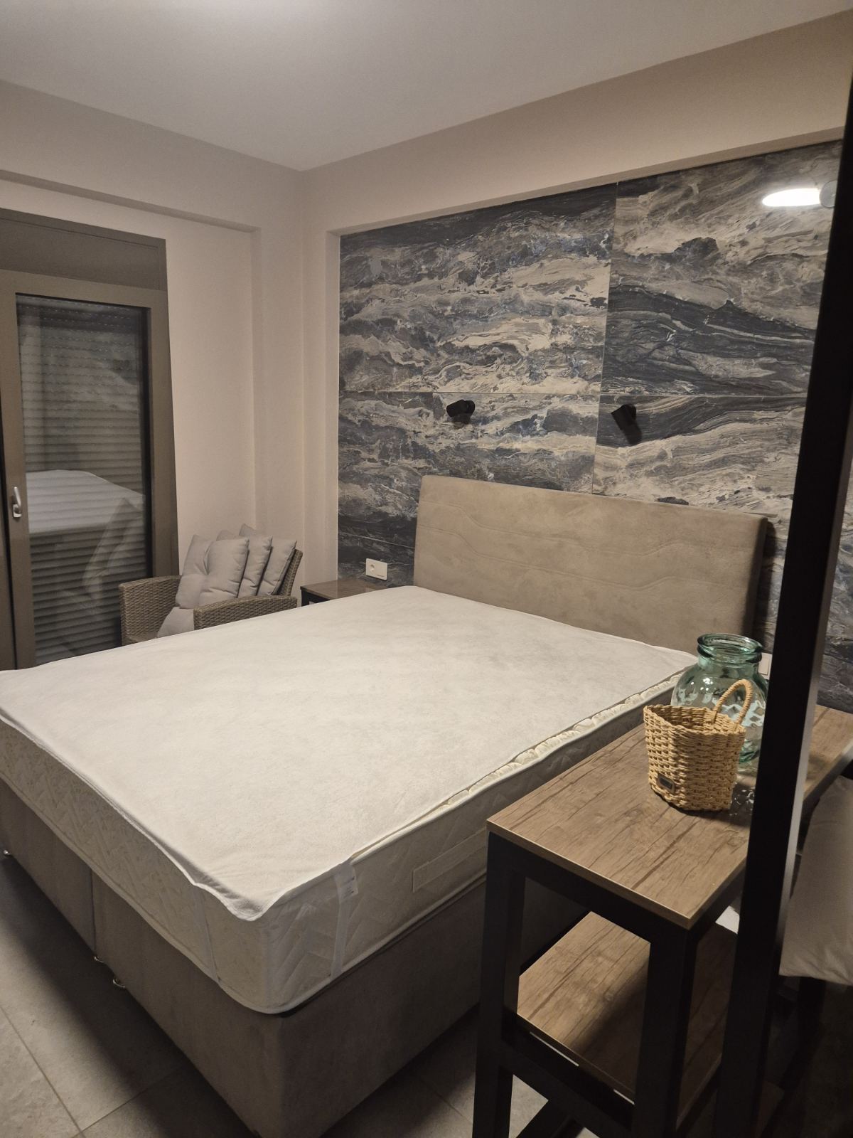 1/4 апартман – бр.3 – се наоѓа на трет кат. Апартманот располага со две големи простории. Има голем брачен кревет во спалната соба и голема дневна просторија поврзана со трпезарија и кујна каде се наоѓаат 2 каучи кои не се спуштаат. Кујната е целосно опремена, со најнов инвентар, исто така има тоалет и балкон на кој се излегува и има летна гарнитура за седење. Може да се сместат максимум 2 возрасни лица и 2 деца до 12 години.